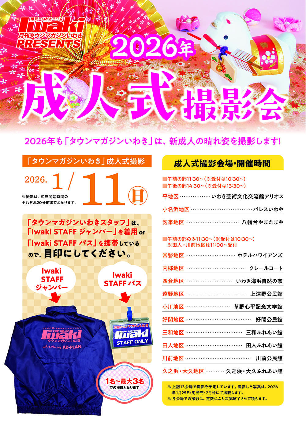 - 2025/12/24 NEWS 「タウンマガジンいわき」12月25日発売・2026年1月号は...